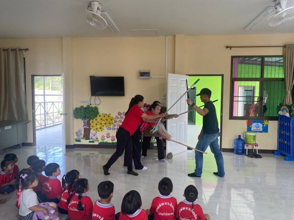 ได้แนะนำประชาสัมพันธ์ เรื่อง Active Shooter ร่วมกันซ้อมแผนวิธีการเอาชีวิตรอดในเหตุกราดยิง Active Shooter /บุคคลคลุ้มคลั่ง ณ ศูนย์พัฒนาเด็กเล็กบ้านโป่งแดง ม.1 ต.โป่งแดง อ.เมือง จว.ตาก