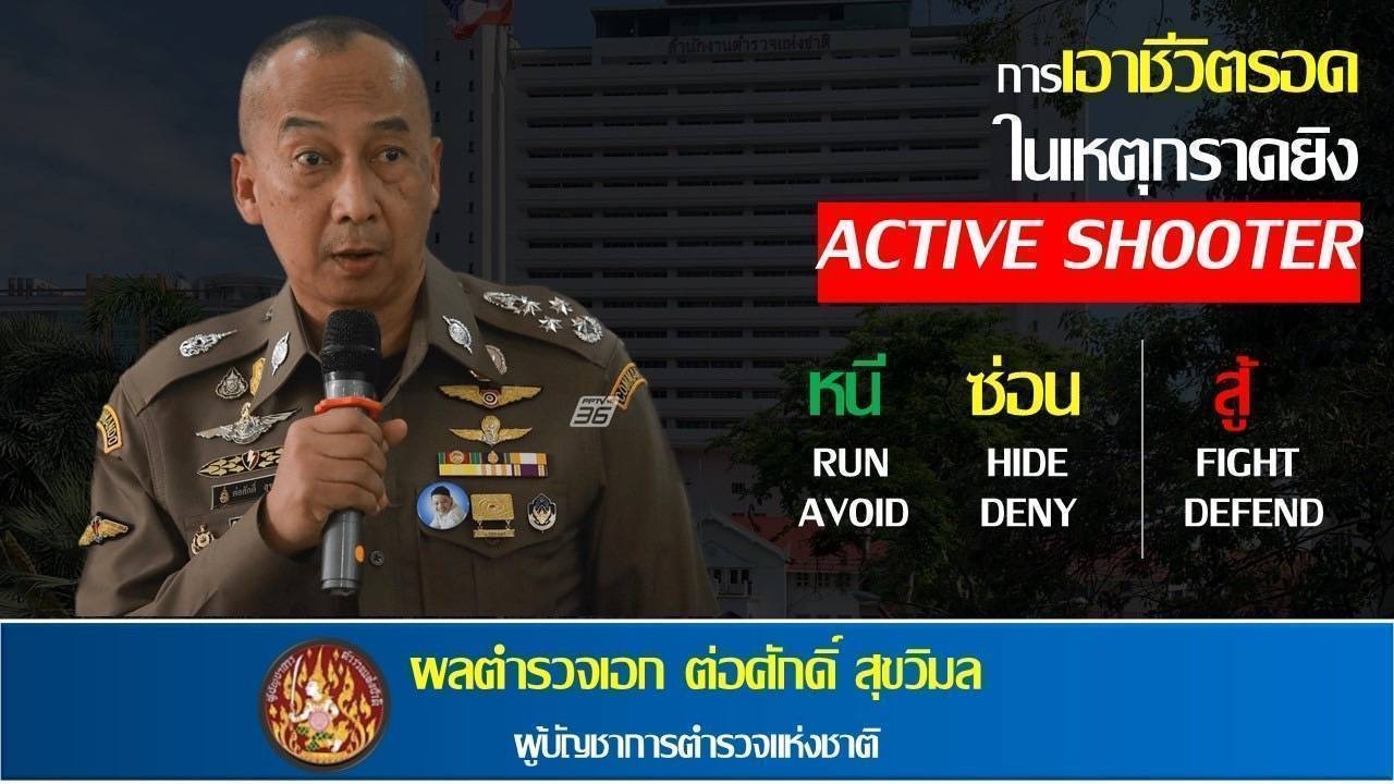 แนะนำประชาสัมพันธ์ เรื่อง Active Shooter แนวทางวิธีเอาตัวรอด ( หนี ซ่อน สู้ )